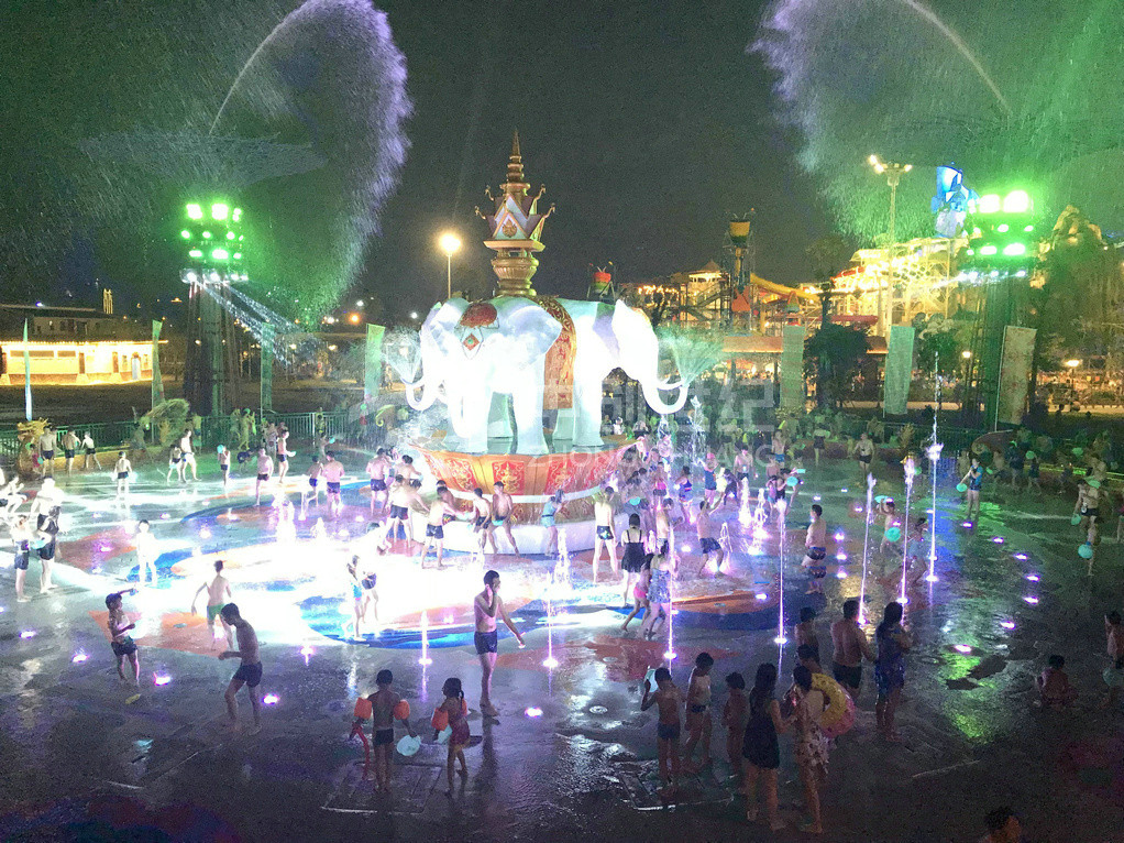 潑水廣場是玉林克拉灣斥資1500多萬元建造的廣西大型專業(yè)娛樂項(xiàng)目。廣場潑水面積超1200平方米,運(yùn)用傣族基本元素,并結(jié)合當(dāng)?shù)匚幕瑯O具民族風(fēng)情。